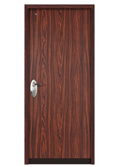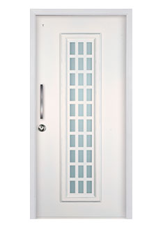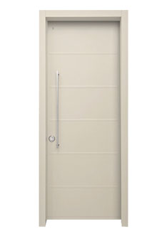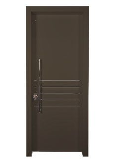 La hoja de la puerta está reforzada con barras de acero verticales, que junto con el bastidor, crean una estructura de alta seguridad.
